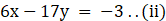 Now, multiplying in Eq. (i) by 3 and then subtracting from Eq. (ii), we get