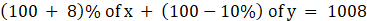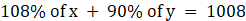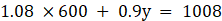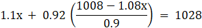 1.1 × 0.9x + 0.92 × (1008-1.08x) = 1028×0.9