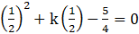 x2 + kx - = 0 then, substituting the value of in place of x should give us the value of k.