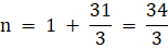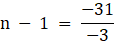 0 = 31 + (n - 1) (- 3)