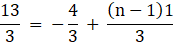 13 = - 4 + (n - 1) [ multiplication by 3 on the both side]
