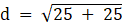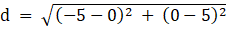 d2 = [( - 5) - 0]2 + [0 - 5]2