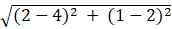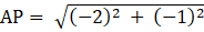 The distance between A (4, 2) and P (2, 1),