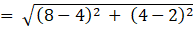 Distance between A (4, 2) and B (8, 4)