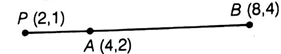 Point P (2, 1) lies on the line segment AB, joining the points A (4, 2) and B (8, 4);