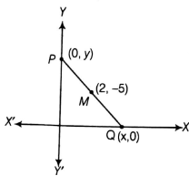A line intersects the Y - axis and X - axis at the points P and Q, respectively. If (2, - 5) is the mid - point of PQ, then the coordinates of P and Q are, respectively