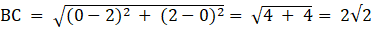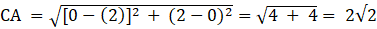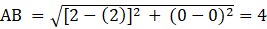 Calculate the distance between A (2, 0) and B (2, 0) in ΔABC;