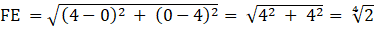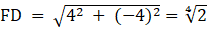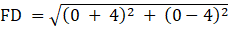 Calculate the distance between F (0, 4) and D ( - 4, 0) in ΔDEF;