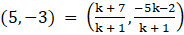 Let P (5, - 3) be the point which divides the line segment joining the points A (7, - 2) and B (1, - 5) in the ratio k:1 internally.