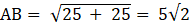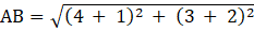 Calculate the distance between A ( - 1, - 2) and B (4, 3);