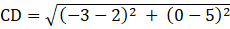 Distance between C (2, 5) and D ( - 3, 0);