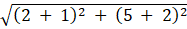Distance between A ( - 1, - 2) and C (2, 5);