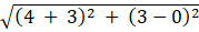 Distance between D ( - 3, 0) and B (4, 3);