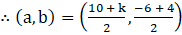 If (a, b) is the mid - point of the line segment joining the points A(10, - 6), B(k, 4) and a – 2b = 18, then find the value of k and the distance AB.