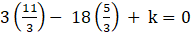 The line segment joining the points A(3, 2) and B(5, 1) is divided at the point P in the ratio 1:2 and it lies on the line 3x - 18y + k = 0. Find the value of k.