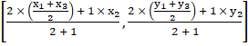 Divide the line joining B(x2, y2) and E in the ratio 2:1,