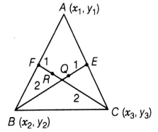 Point R (, β) divide the line joining C(x3, y3) and F in the ratio 2:1,