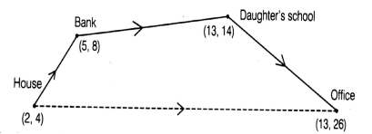 Total distance (House + Bank + School + Office) travelled = 5 + 10 + 12 = 27 units
