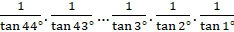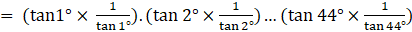 = tan1°.tan 2°.tan 3°…tan 43°.tan 44°.1.cot 44°.cot 43°…cot 3°.cot 2°.cot 1°