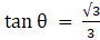 tan θ = √ 3 = tan 60°
