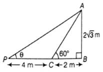 Now, if the same height of tower casts a shadow 4m more than that from preceding length, then the Sun’s elevation becomes 30°
