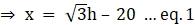 We get 20 +x = √3 h
