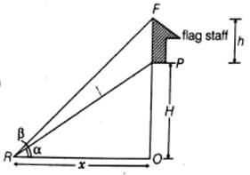 A vertical tower stands on a horizontal plane and is surmounted by a vertical flag staff of height h. At a point on the plane, the angles of elevation of the bottom and the top of the flag staff are α and β respectively. Prove that the height of the tower is .