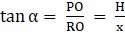 The angle of elevation of the bottom and top of the flag staff on the plane is PRO = α and FRO = β respectively.