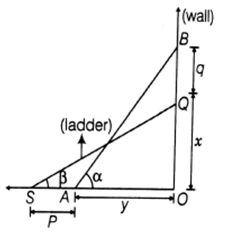 A ladder rests against a vertical wall at an inclination α to the horizontal. Its foot is pulled away from the wall through a distance p, so that its upper end slides a distance q down the wall and then the ladder makes an angle