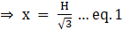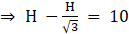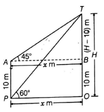 Let PO = x m & if height of the vertical tower, TO = H m, then TB = TO –OB = (H -10) m