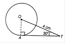 Given : A circle with center O and a tangent AT passing through point A on the circle, also OT = 4 cm and ∠OTA = 30°