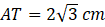 In figure, AT is a tangent to the circle with center 0 such that OT = 4 cm and ∠OTA = 30°. Then, AT is equal to