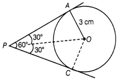 If two tangents inclined at an angle 60° are drawn to a circle of radius 3 cm, then the length of each tangent is