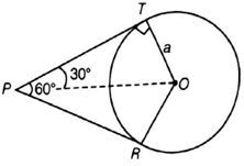Let us consider a circle with center O and tangents PT and PR and angle between them is 60° and radius of circle is a .