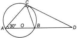 Given : AB is a diameter of a circle, AB is a diameter and AC is a chord Also BAC = 30° .The tangent at C intersects extended AB at a point D
