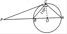 Given : A circle with center O in which PC is a tangent a point C and AB is a diameter which is extended to P and PCA = 110°