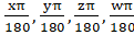 Let angles subtended at A, B, C and D be x°, y°, z° and w° respectively.