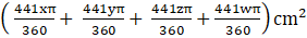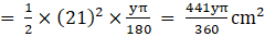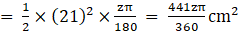 In figure, arcs have been drawn of radius 21 cm each with vertices A, B, C and D of quadrilateral ABCD as centers. Find the area of the shaded region.