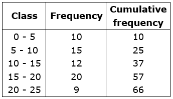 Now, N/2 = 66/2 = 33, which lies in the interval 10 - 15. Therefore, lower limit of the median class is 10.