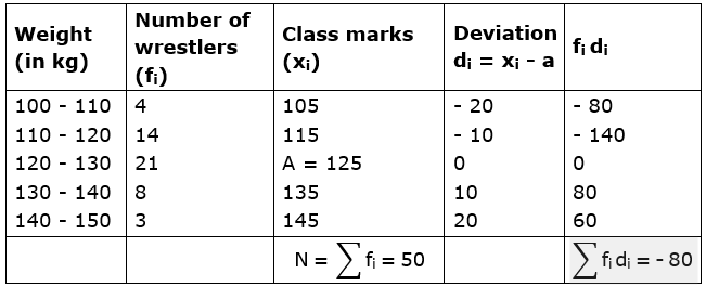 The weights (in kg) of 50 wrestlers are recorded in the following table.