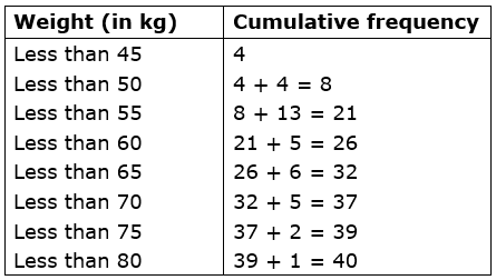 Construct a cumulative frequency distribution (of the less than type) table for the data above.