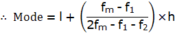 Here, l = 201,fm = 26,f1 = 12,f2 = 20 and (class width) h = 1