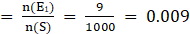 Given that, at a fete, cards bearing numbers 1 to 1000 one number on one card, are put in a box. Each player selects one card at random and that card is not replaced so, the total number of outcomes are n(S) = 1000