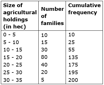 Size of agricultural holdings in a survey of 200 families is given in the following table