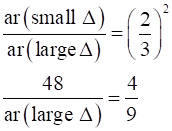 Ratio of area of both triangles = (Ratio of their corresponding sides)2