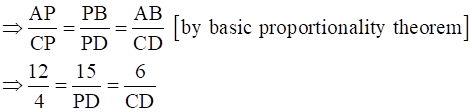 In given figure, if ∠A = ∠C, AB = 6 cm, BP = 15 cm, AP = 12 cm and CP = 4 cm, then find the lengths of PD and CD.