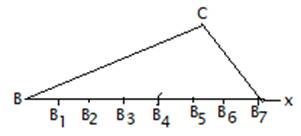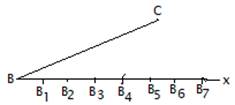 1. Locate points B1, B2,B3,B4,B5,B6 and B7 on BX at equal distance.