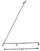 Draw a line segment of length 7 cm. From a point P on it which divides it into the ratio 3:5.