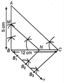 1. Draw a line BC=12 cm.