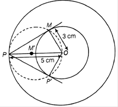 Taking M’ as a centre and OM’ as radius draw a circle dotted which cute the inner circle at M and P’.